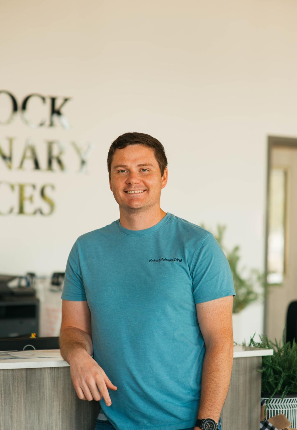 Dr. Robert Holmes is a passionate and dedicated veterinarian who grew up in and around a veterinary practice, closely watching his stepfather excel in the field. This upbringing ignited his love for animals and inspired him to follow in his stepfather's footsteps.